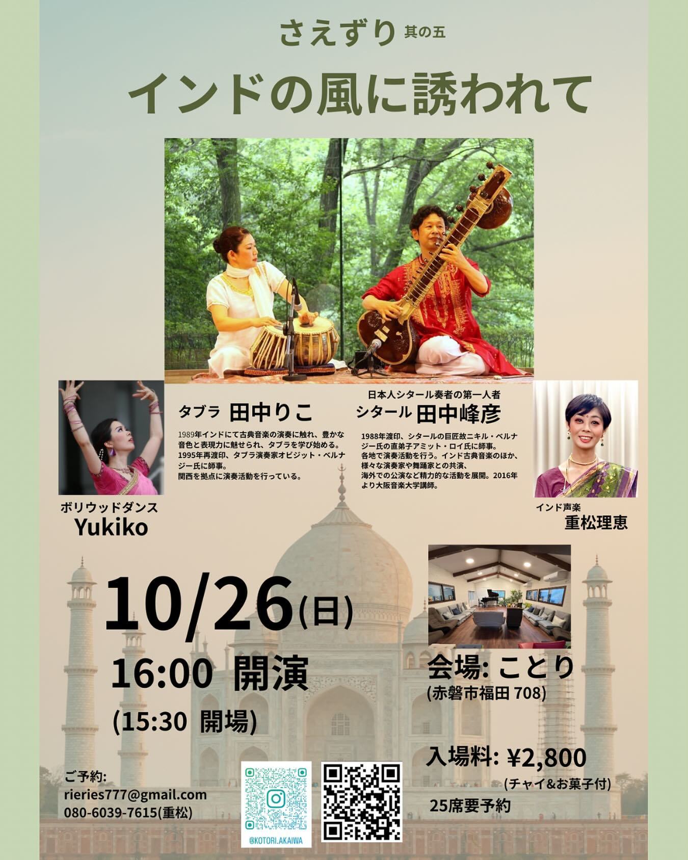 出演: 田中峰彦(シタール)、田中りこ(タブラ)