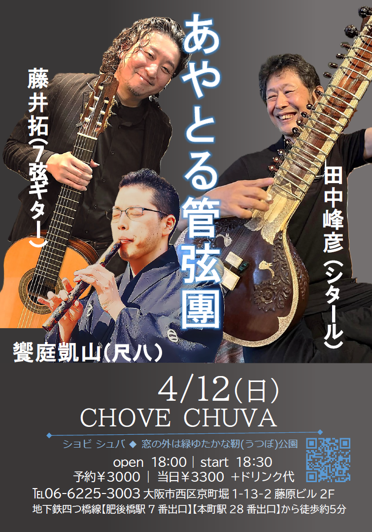 出演: 田中峰彦(シタール)、藤井拓(7弦ギター)、饗庭凱山(尺八)