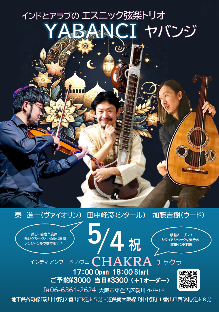 出演: 田中峰彦(シタール)、加藤吉樹(ウード)、秦進一(ヴァイオリン)