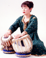 木製の小さい太鼓と金属製の大きい太鼓ふたつをセットにして演奏します。